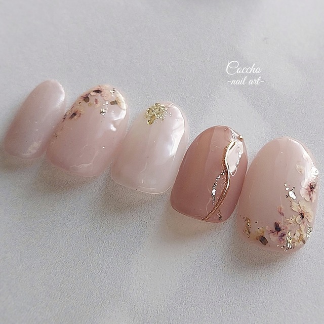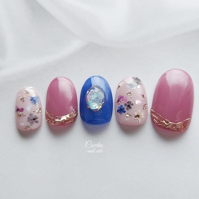 No.244 大人ピンクの押し花ネイル / ネイルチップ ジェルネイル フラワーネイル ピンク 押し花 マグネット ニュアンス 花