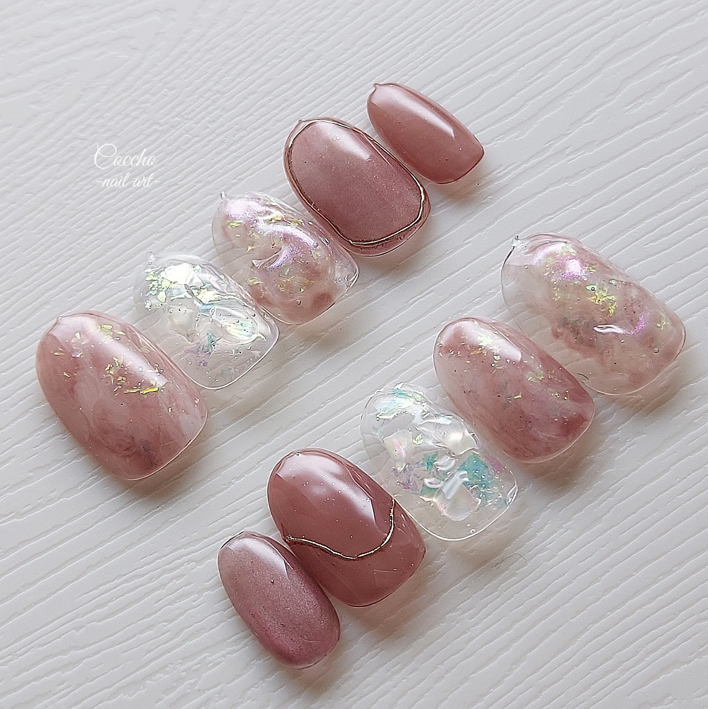 ・左薬指、小指→シアーくすみ赤をベースに、ミラーネイルをしたりしました。