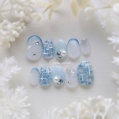 No.351 Winter blue tweed / ネイルチップ ネイル ジェルネイル ブルー 青 水色 ツイード キラキラ フレンチ オーロラ 冬 クリスマス 結婚式 ウェディング ブライダル 成人式 振袖