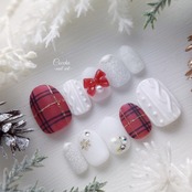 ネイルチップ ネイル ジェルネイル 赤 黒 白 クリスマス チェック ニット ミラー ビジュー リボン 冬 雪 キラキラ