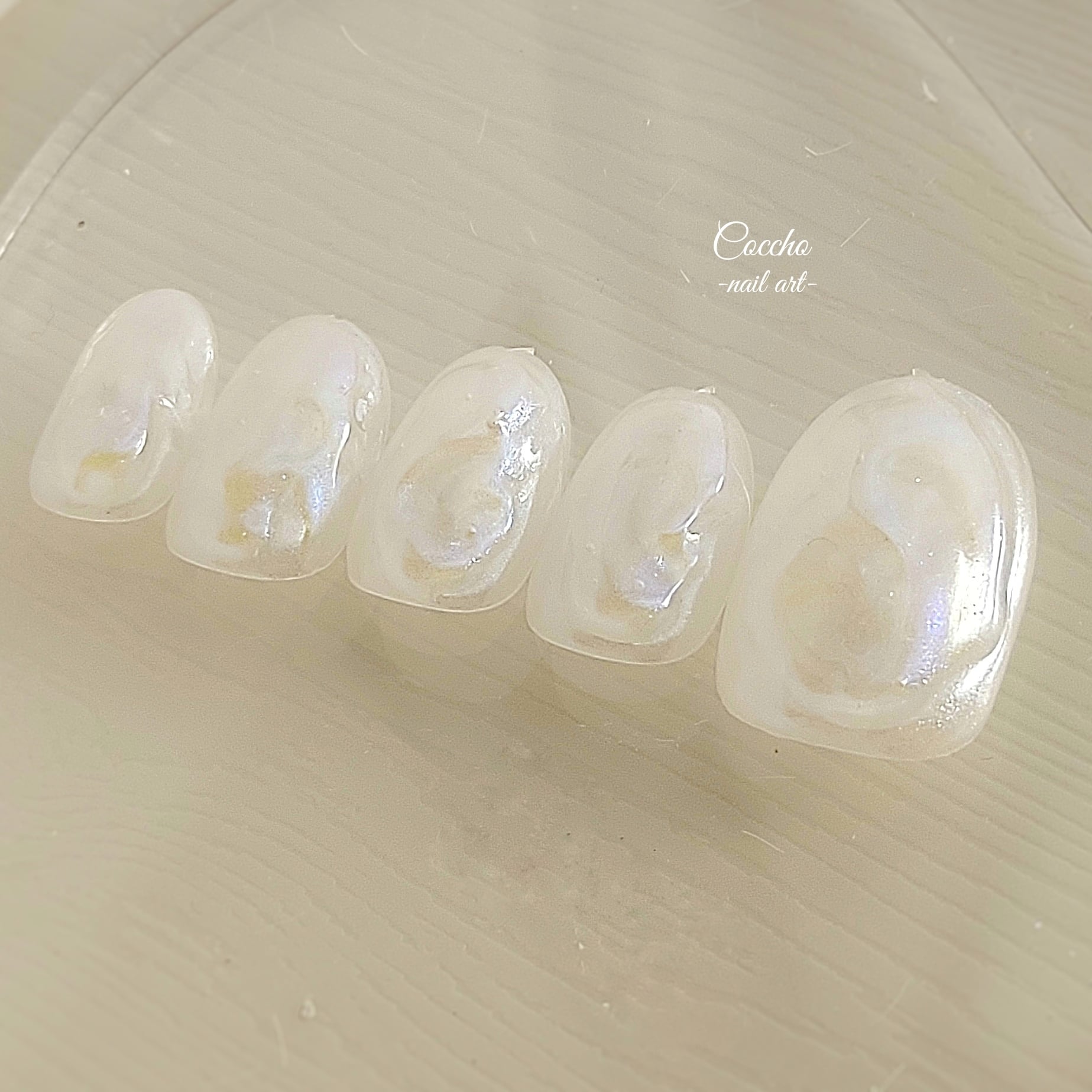 No.375 ホワイトオーロラのうるぷるネイル / ネイルチップ ネイル ジェルネイル ホワイト 白 ニュアンス うるうる ちゅるん オーロラ ぷるぷる シンプル 結婚式 ウェディング ブライダル 成人式 振袖