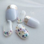中指→押し花を敷き詰めて、控えめなラメ等で上品にキラキラさせてみました。
