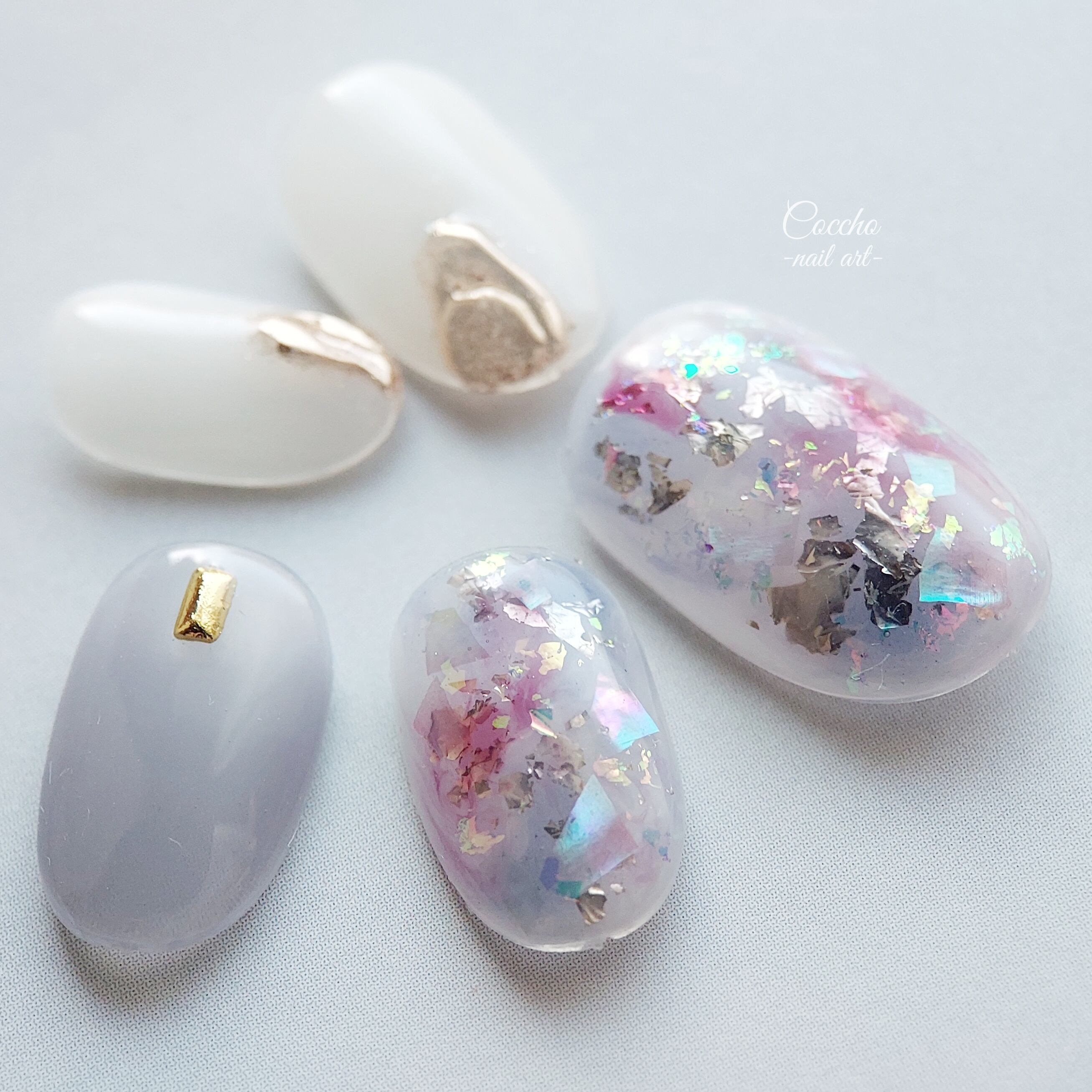オーロラシェル等を使い反射が綺麗なニュアンスネイルにしました。