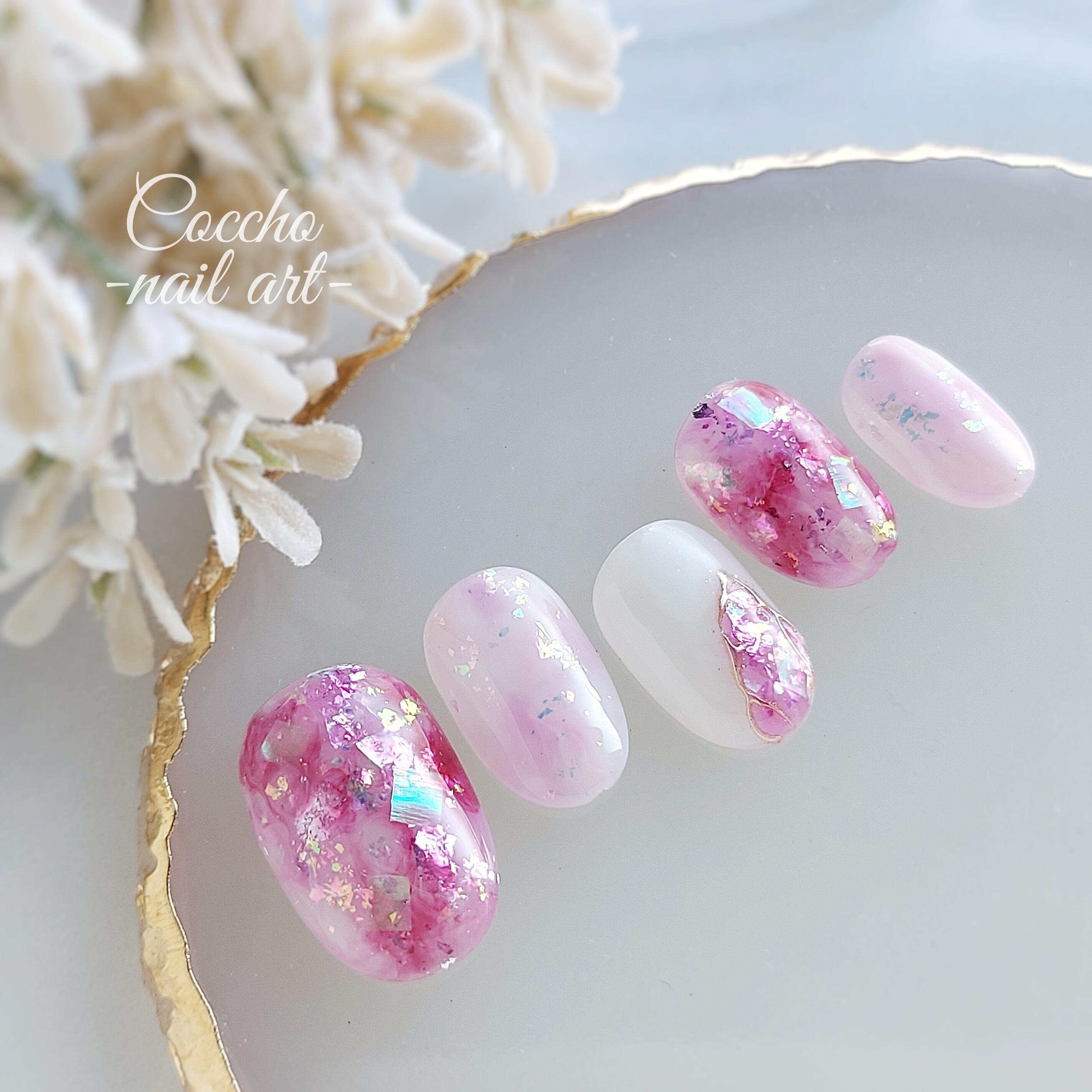 人差し指・小指→ピンク系で優しいニュアンスにしました。