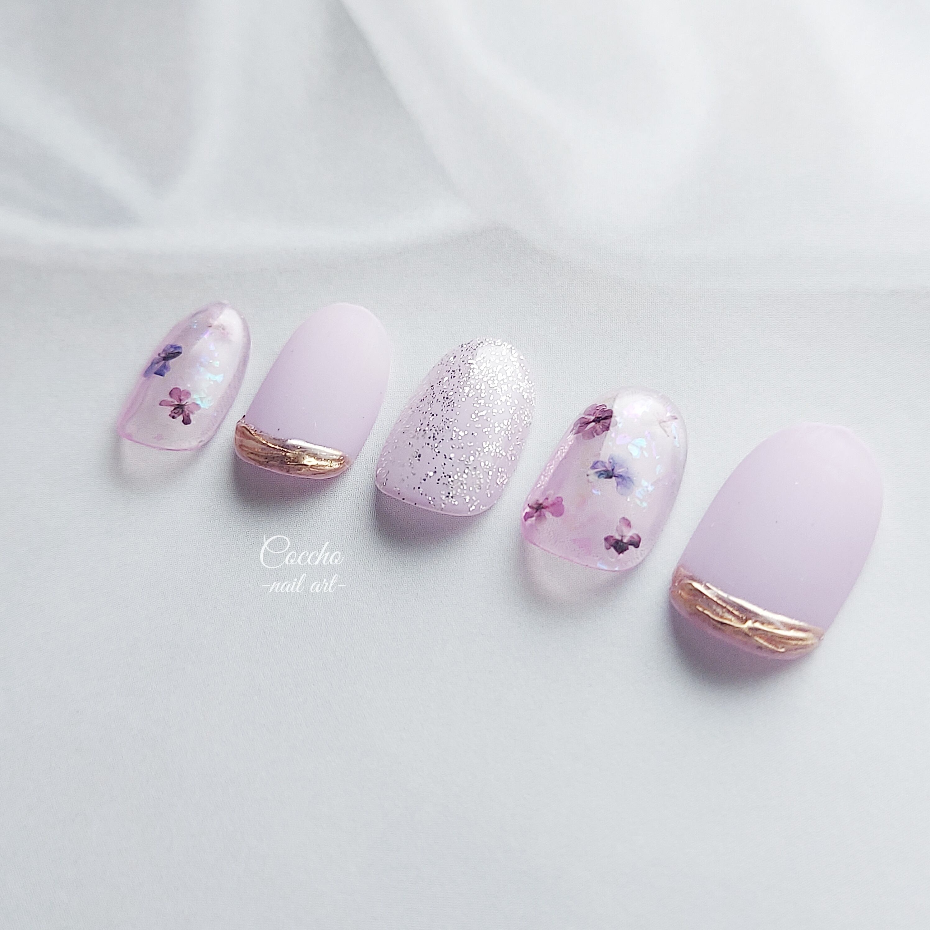 No.53 ジェルネイル ネイルチップ 紫 ドライフラワー パープル ラベンダー 押し花